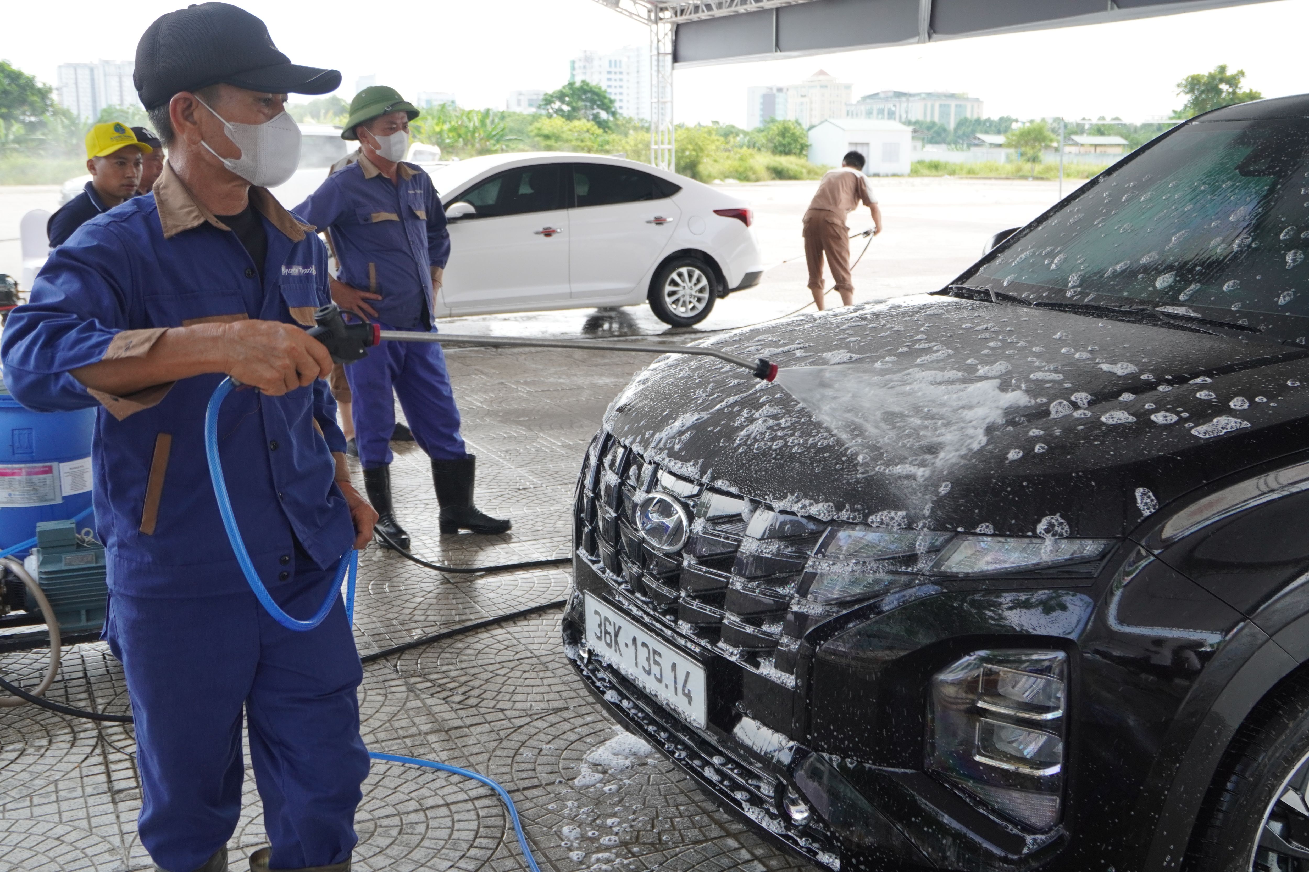 Thao tác khi rửa xe cũng tương tự như khi phun bọt, xả nước từ dưới lên trên và theo từng khu vực để đảm bảo toàn bộ xe được làm sạch đồng đều.